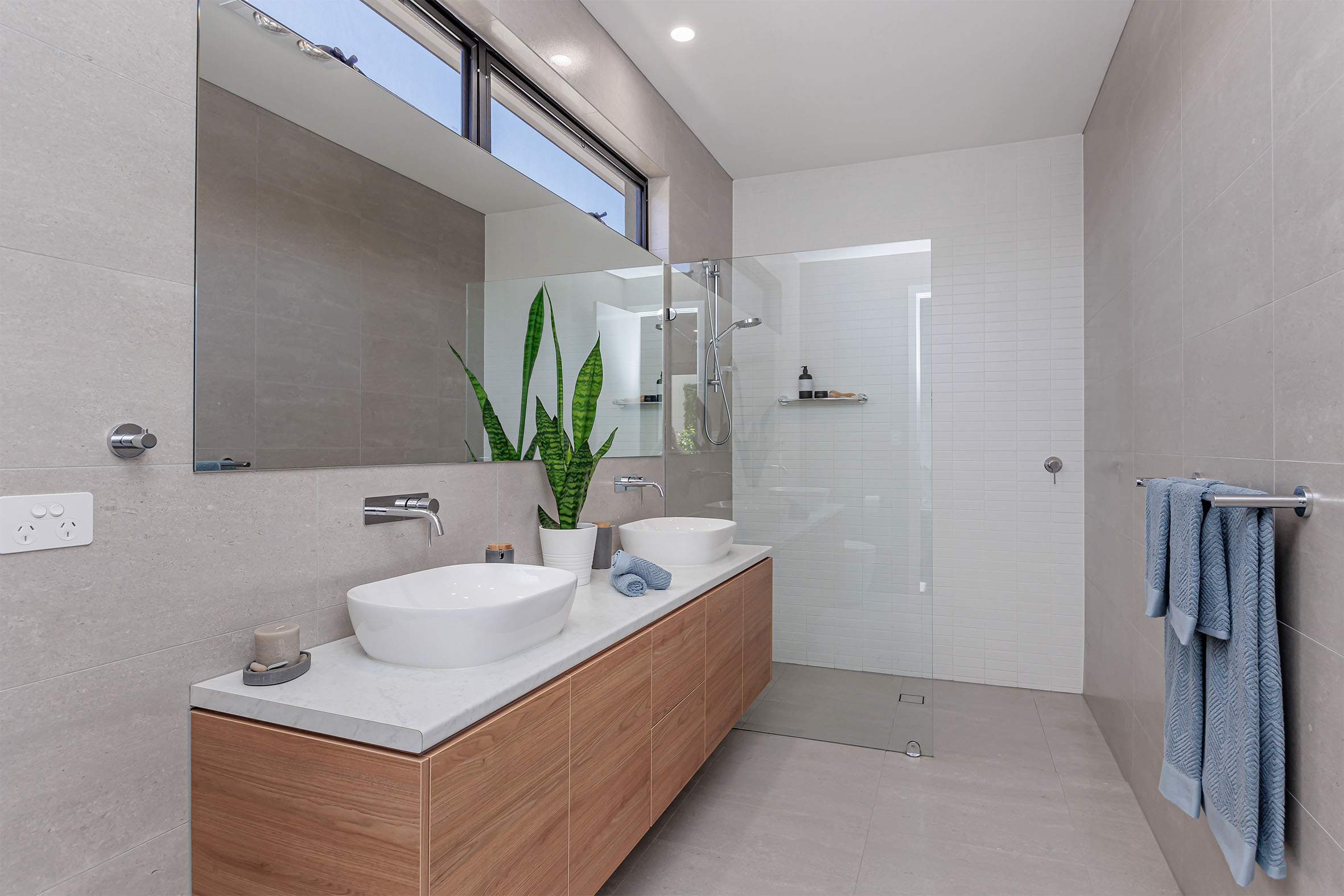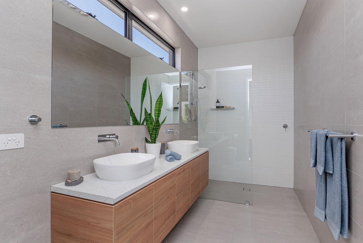 • Floor to ceiling tiles to both bathrooms